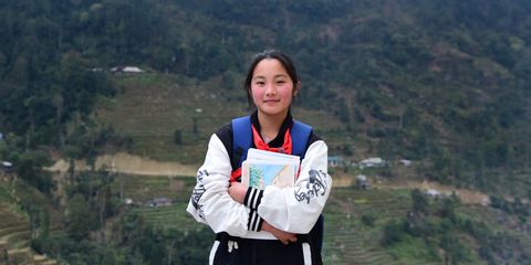 Sào, 15, received her school supplies as part of our Typhoon Yagi relief efforts.