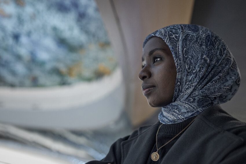 Razan from Jordan at the United Nations European Headquarters. Image credit: Plan International / Antoine Tardy.
