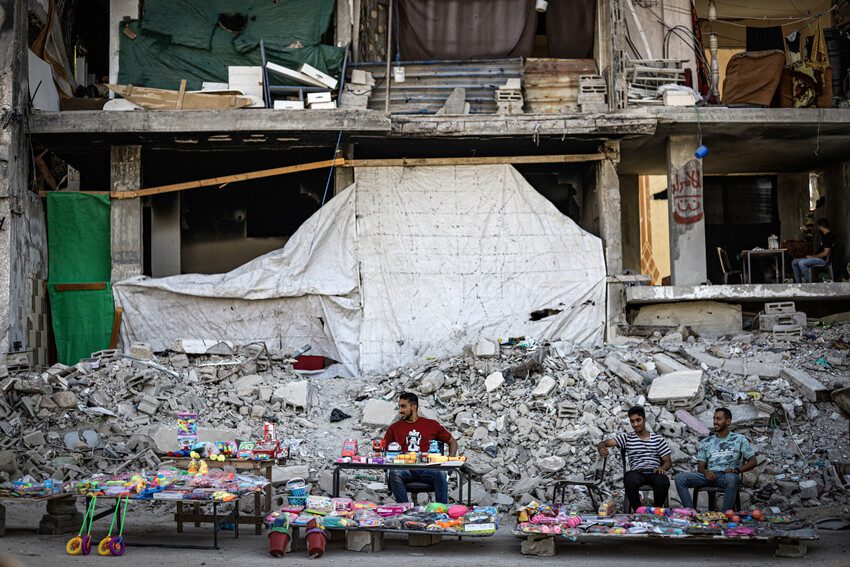 “My Gaza is one of the most contradictory places in this world. Amidst brutal destruction and devastation, you stumble across this stall filled with colorful children’s toys, standing in stark contrast to the dull colours of devastation and death—a bold defiance of oppression. There will still be hope for a better future.